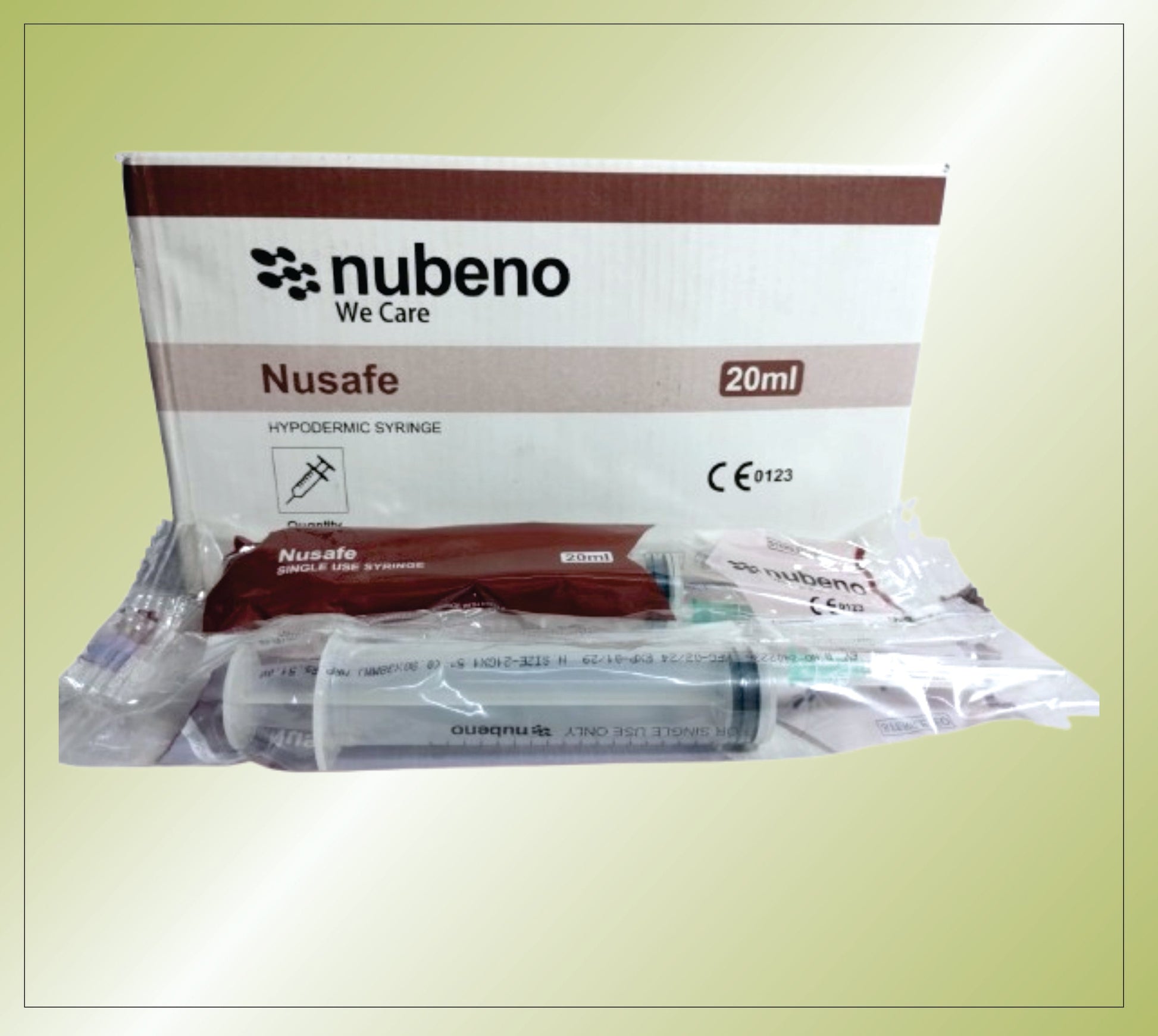 NUSAFE SYRINGE 20 ML (RIBON PACK) 21/22 G*1.5" من Nubeno